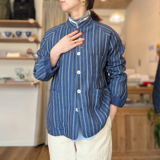 SLOW HANDS(スローハンズ)ストライプ柄リネンジャケット/男女兼用