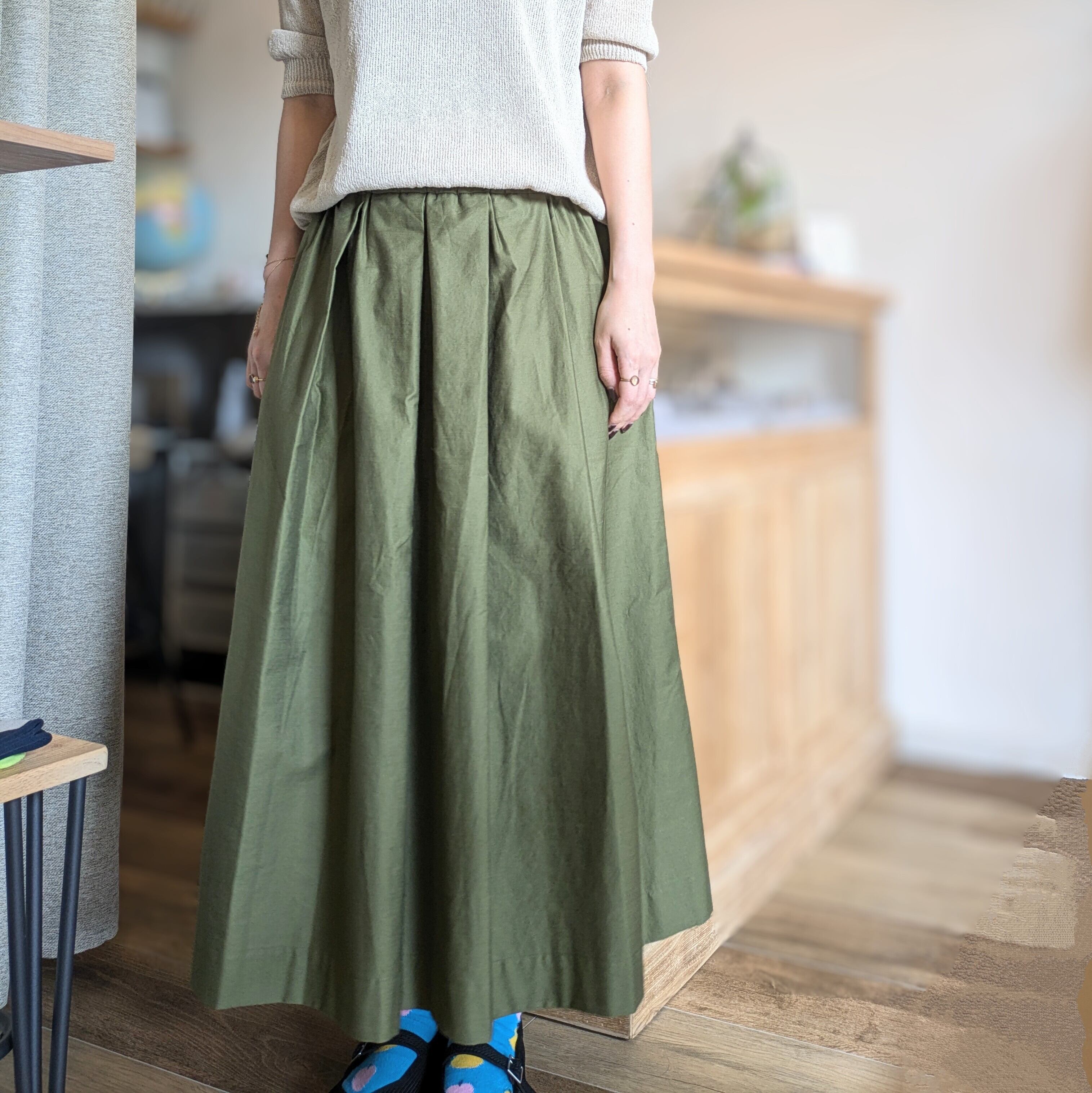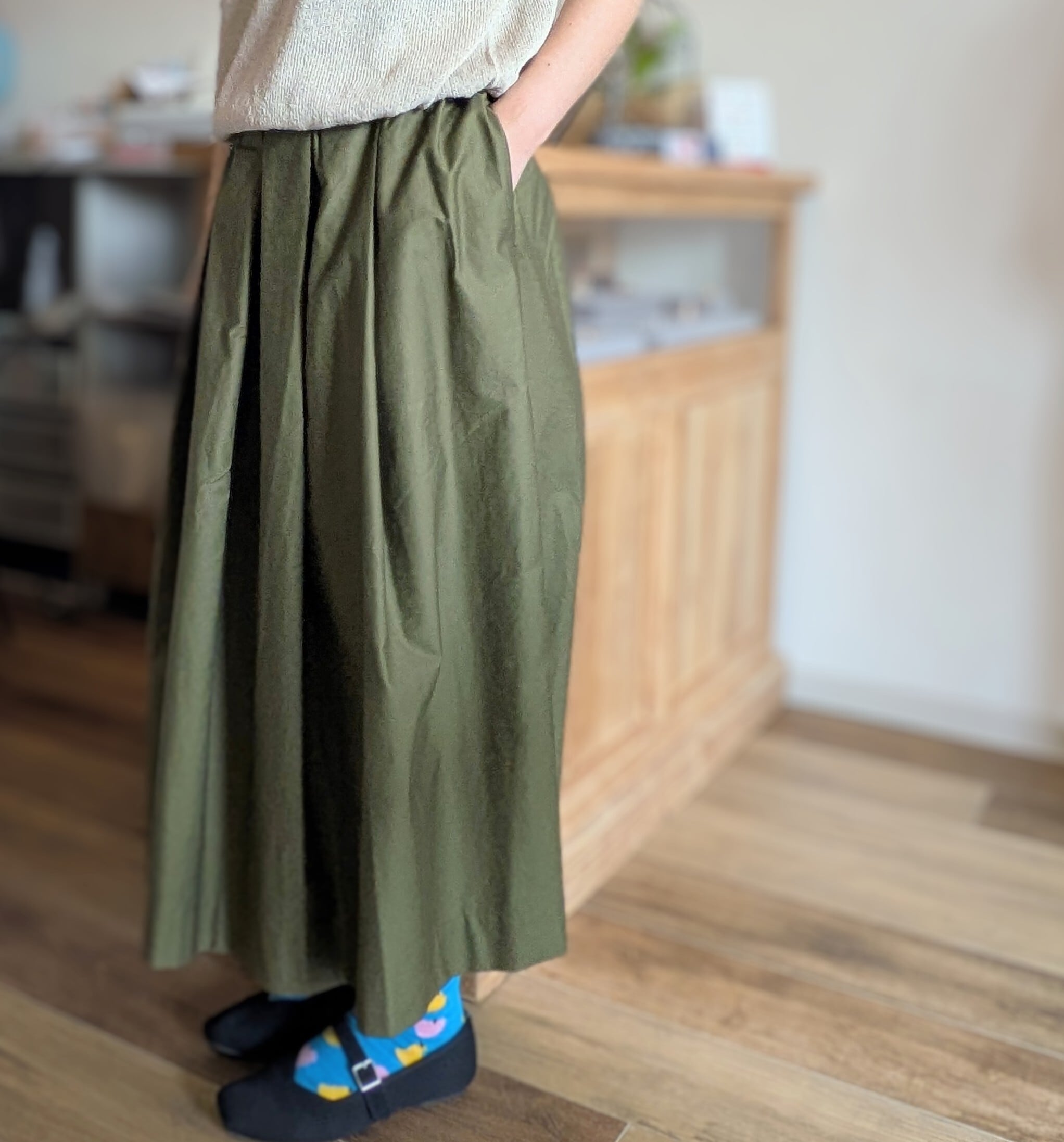 Linen Ya(リネンヤ)バックサテンワッシャー地タックスカート(Green)