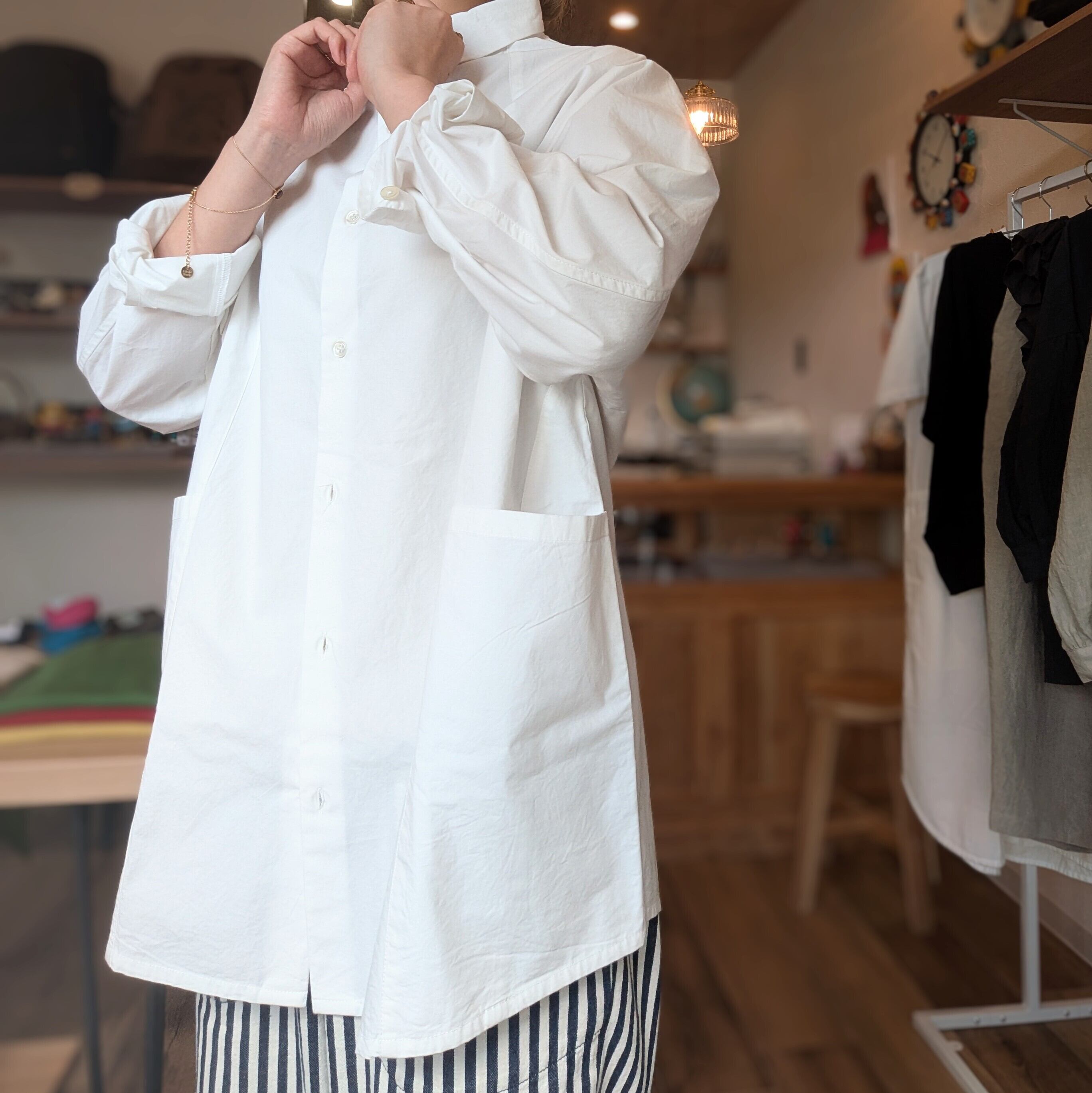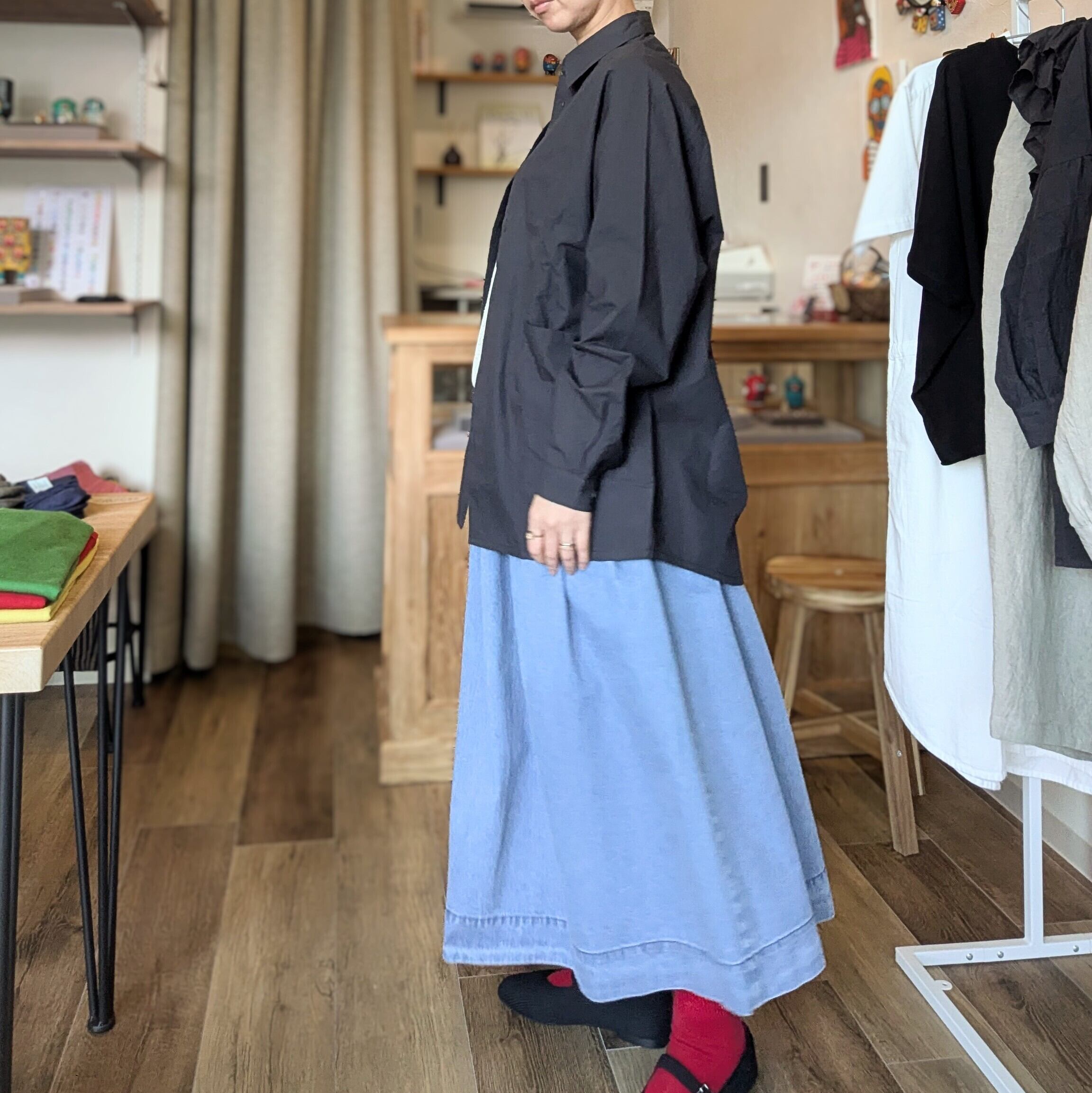 身幅は61cmとゆとりがあり、ハリのあるコットン地でカジュアルな印象。