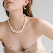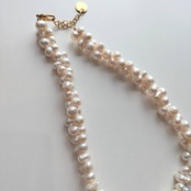 こちらのネックレスで使われるパールは、2個のパールがつながって形成された凹凸ある形を採用。