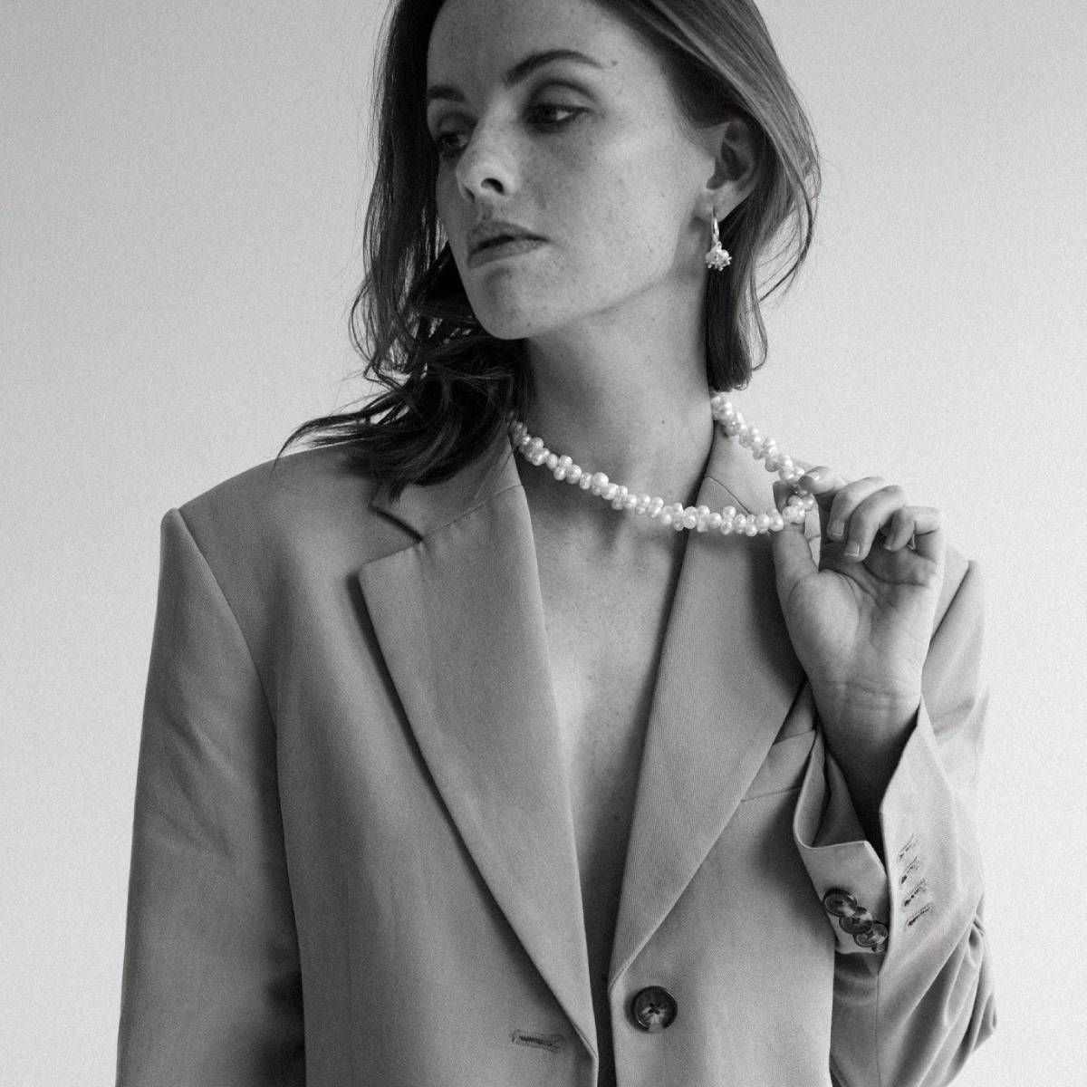 連続して組み合わせることで、お花のネックレスのように柔らかな印象を与え、パールの古典的なイメージを変えてくれます。