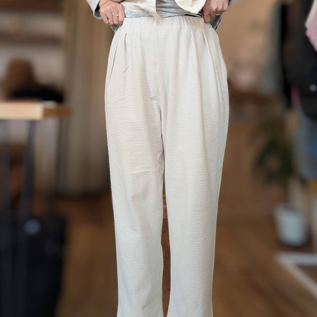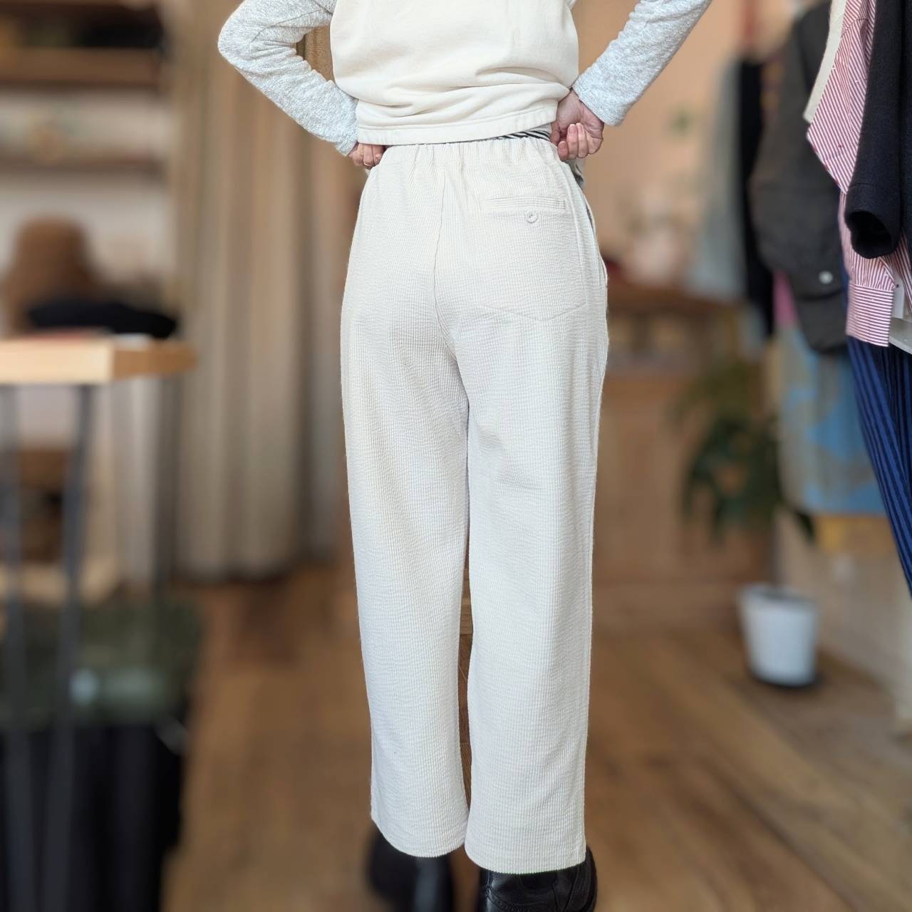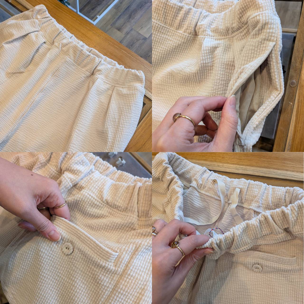 ウエストはゴムと紐仕様、そしてストレッチが効いているためリラックス感のあるはき心地。