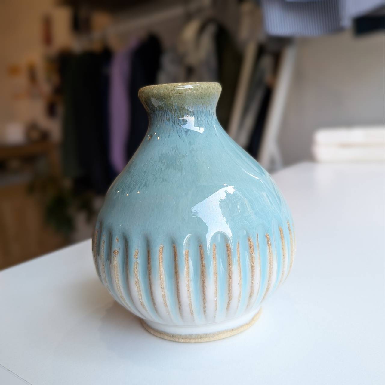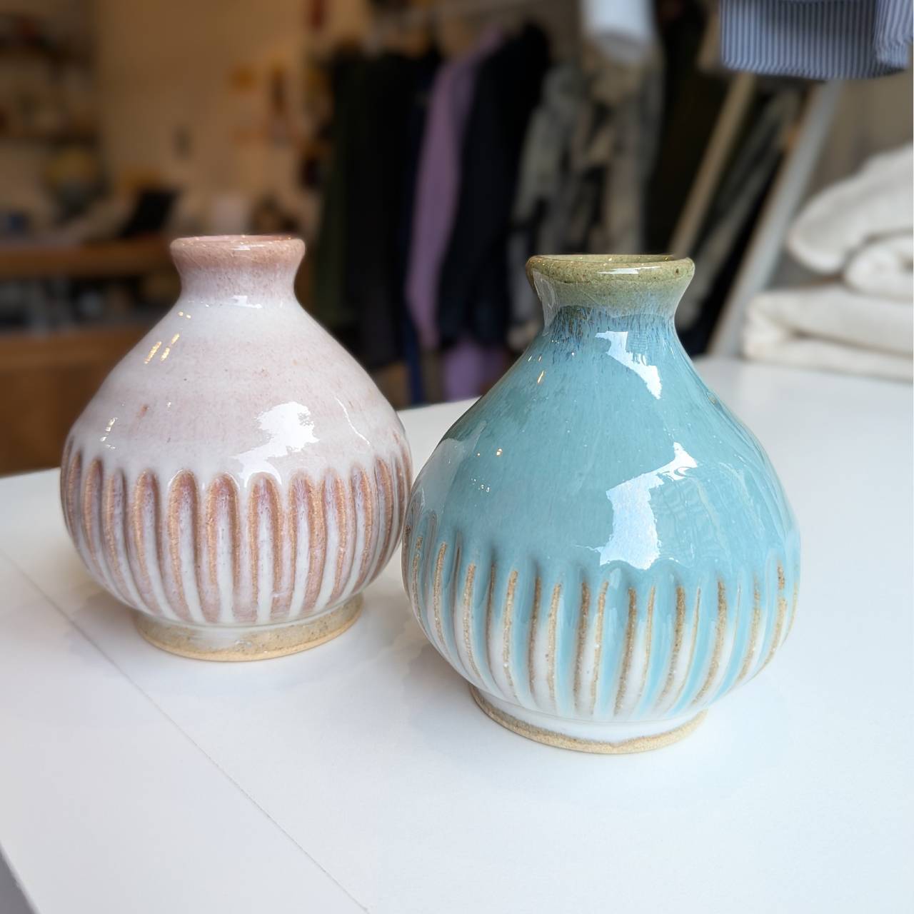 【万風窯のしのぎ一輪挿し|やさしい彩りの陶器花器】
