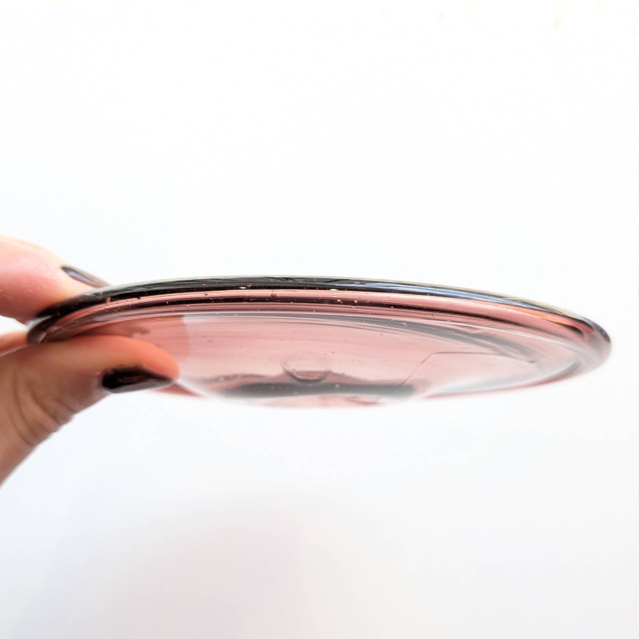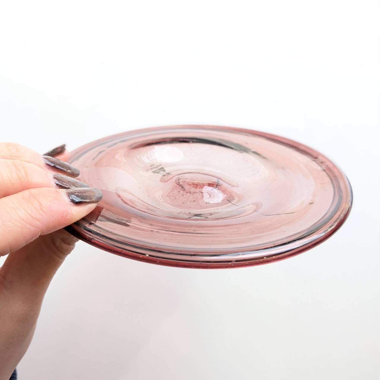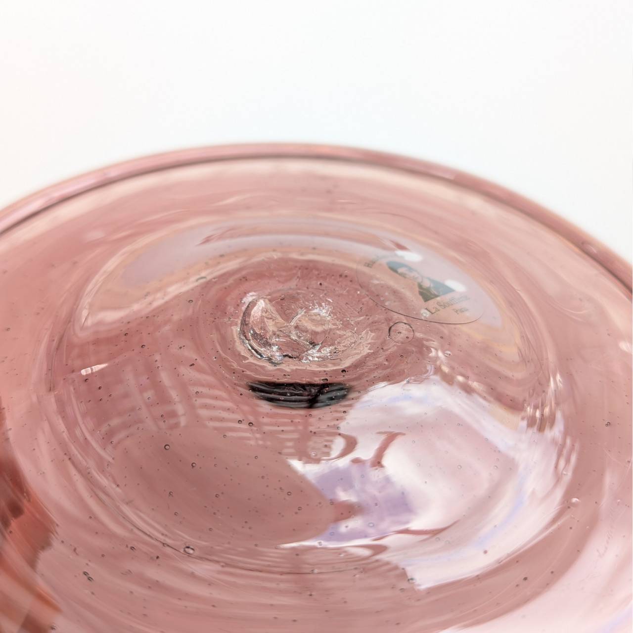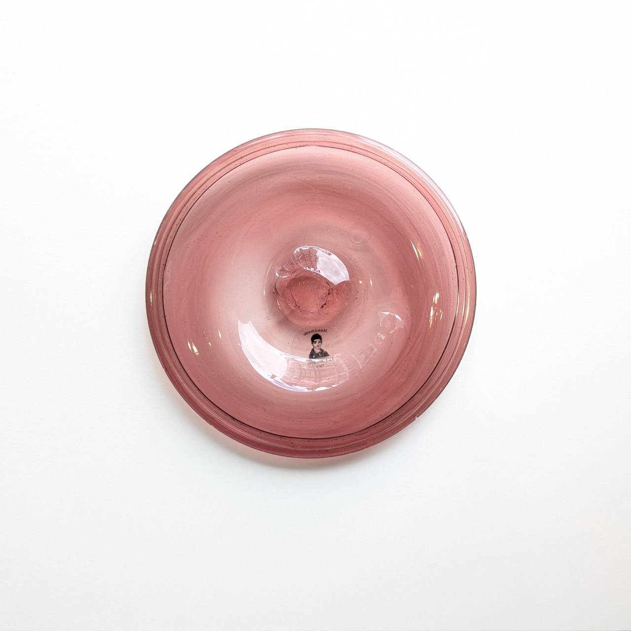 ・お皿の裏面は吹きガラス製ならではの「竿跡」があり、これはガラス本体と吹きガラスを吹く竿を切り離す際にできる跡のことです。