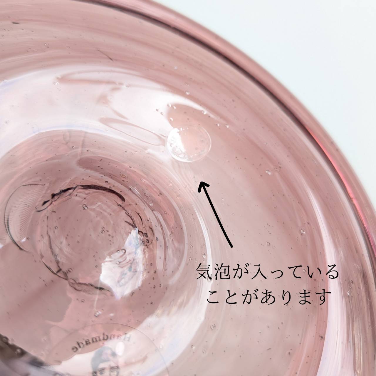 ・ガラス製品の一部にガラスが鋭く尖っている、もしくは気泡が割れて固まり鋭くなっている部分が発生している場合がございます。