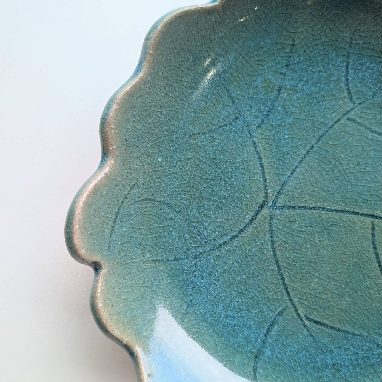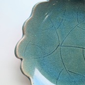 【トルコ釉グリーンの花皿|蔵王焼 16cm陶器プレート】