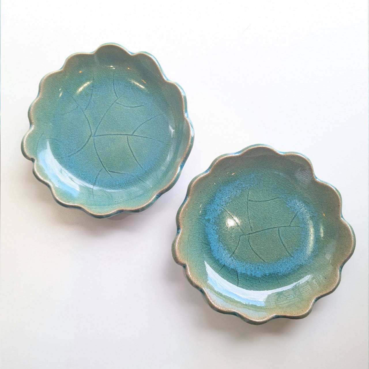 美しいグリーンが印象的な、トルコ釉薬の花皿。