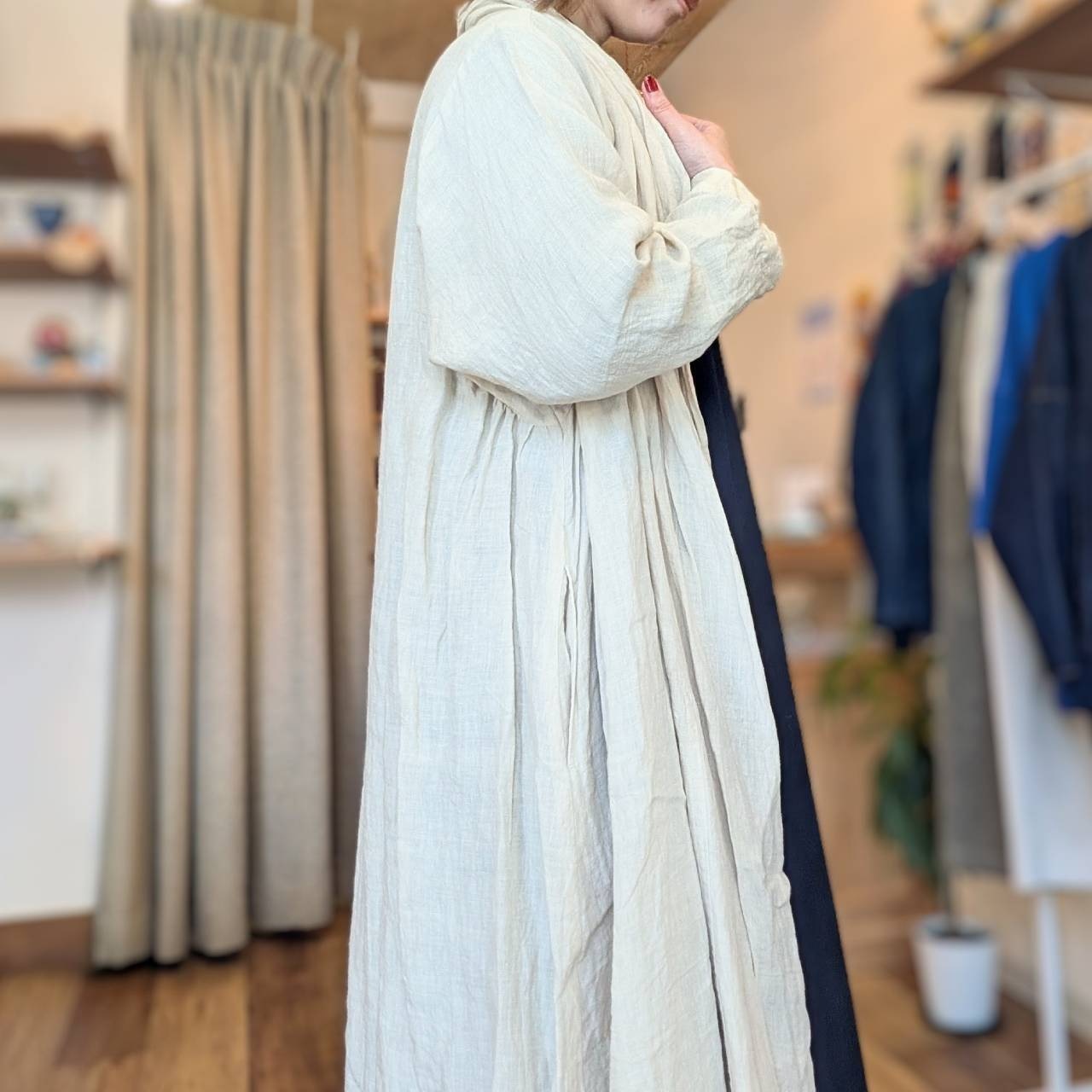 リネン生地を贅沢に使用した、軽やかなロングコート。