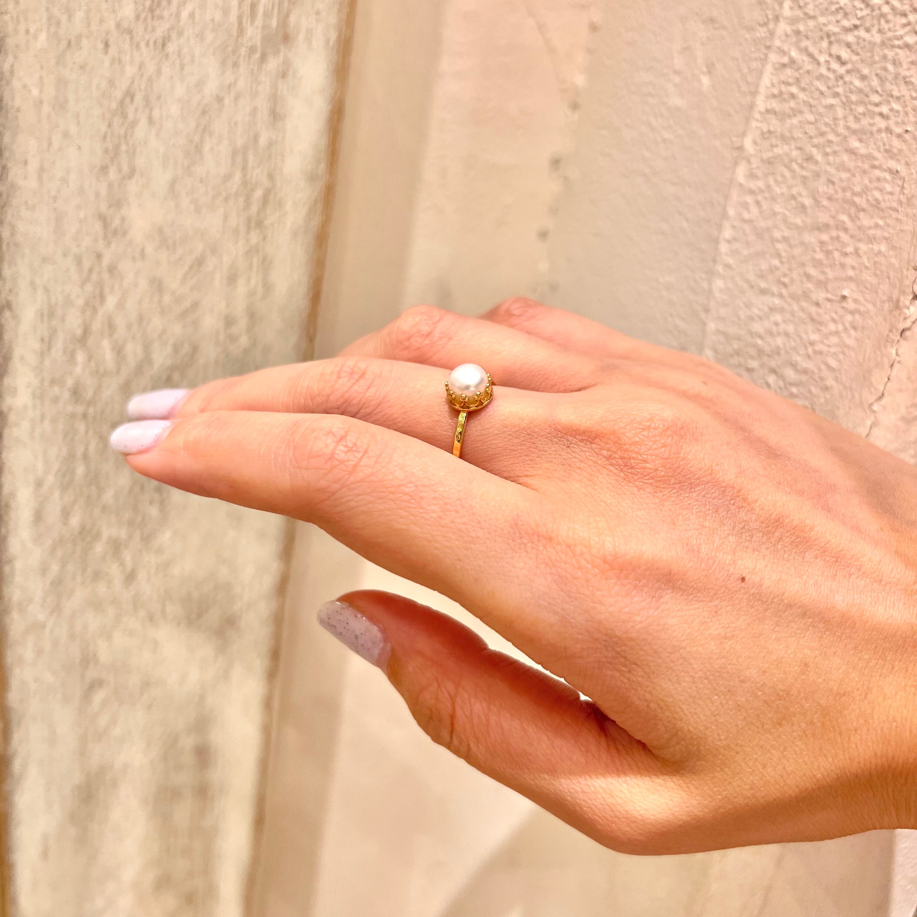 細身のリングにワンポイントのパールは手元を美しく見せてくれ、様々なシーンで活躍します。