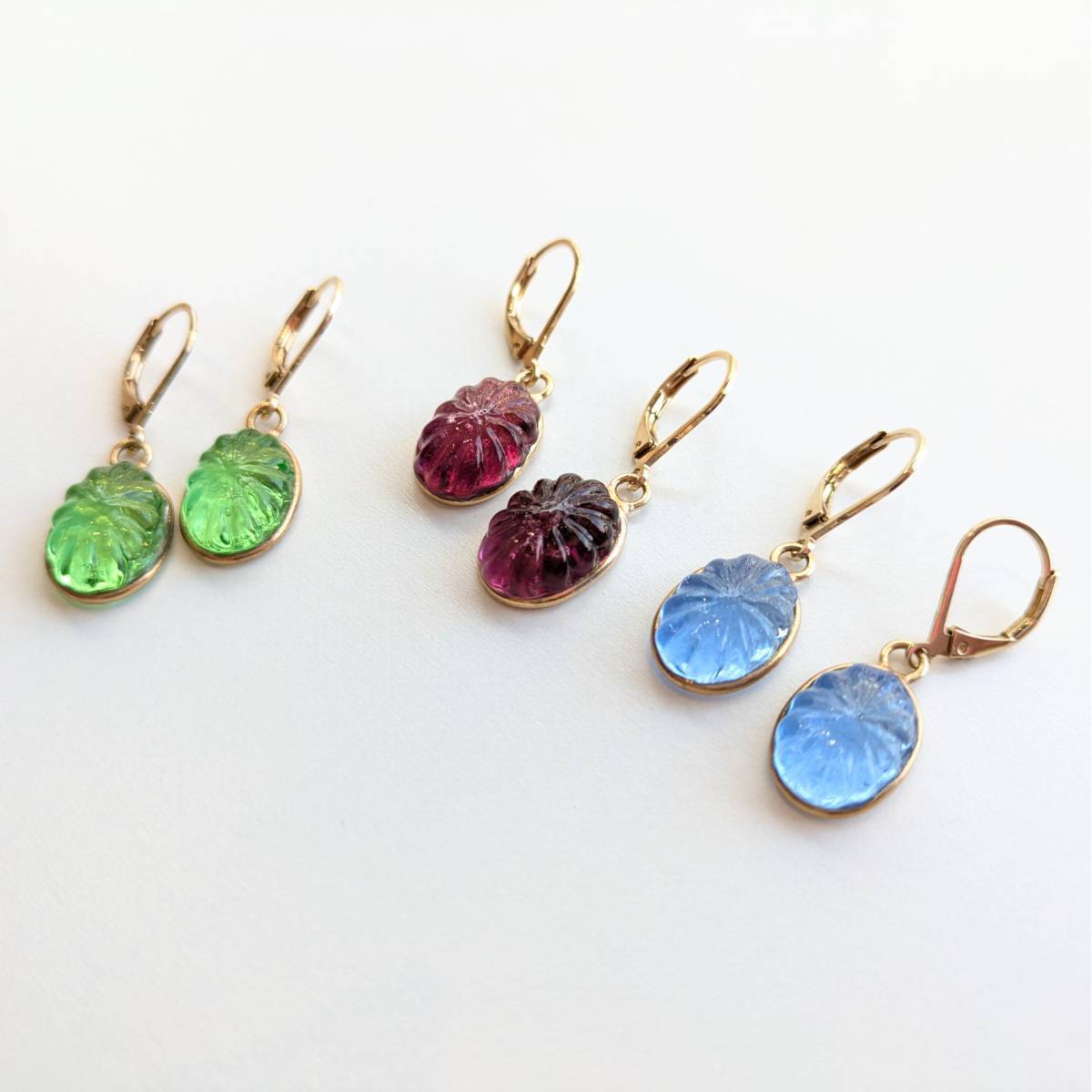 サイズ:ガラス楕円縦 約1.5cm 横 約1cm、ピアス全長約3cm