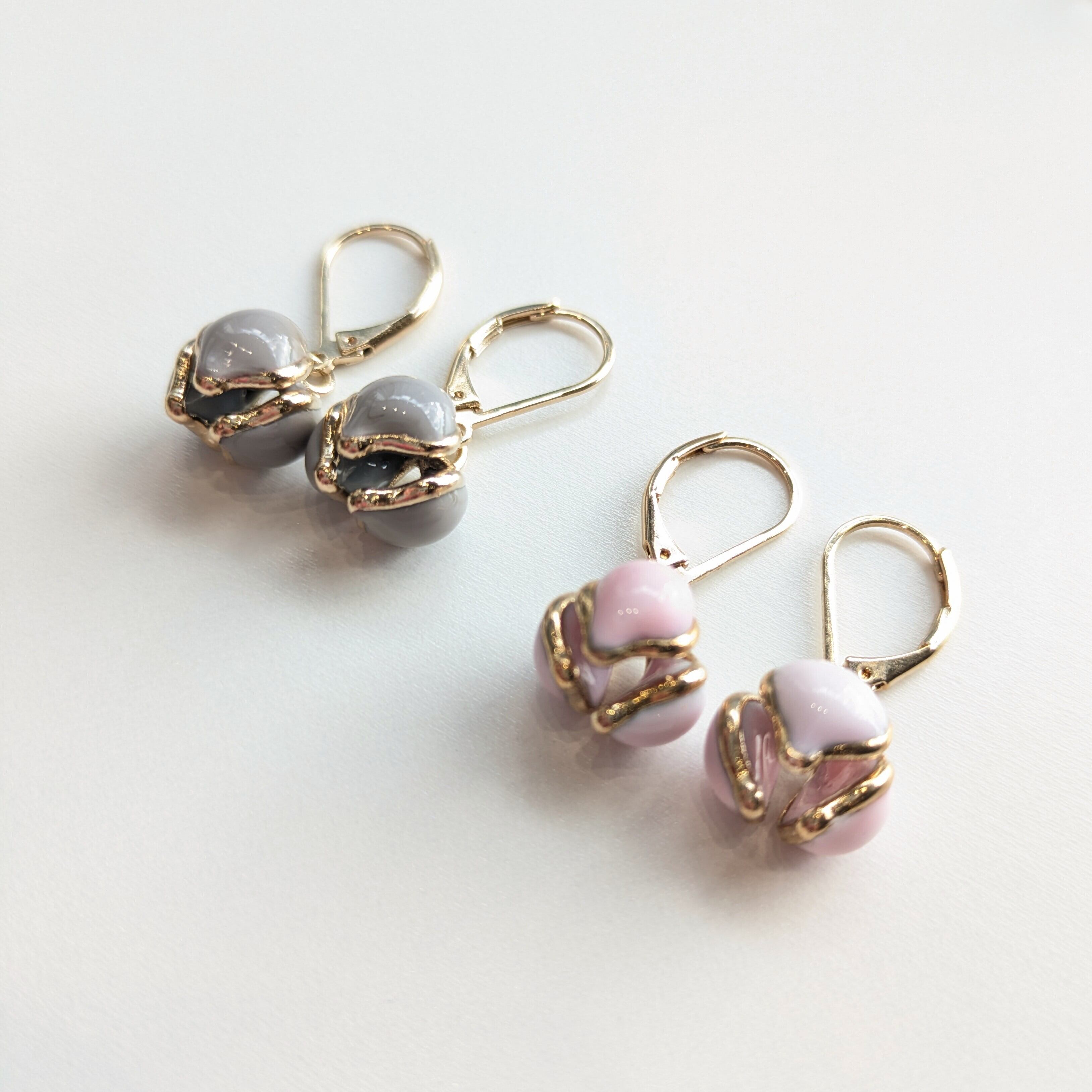 ◆一点一点ハンドメイドのためガラスの膨らみや形、ポストの長さ、ゴールドコーティングの色味など個体差があります。彼女の手から生み出される作品を、ぜひ楽しんでいただけたらと思います。