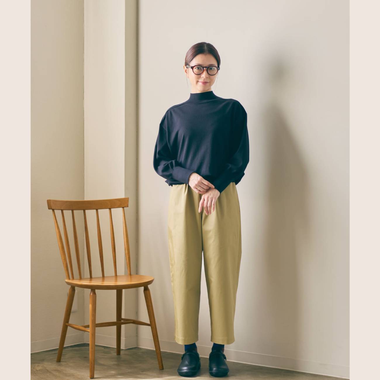 Linen Ya定番の洗えるコットンニットから、首元を高く設定したモックネックタイプの登場。